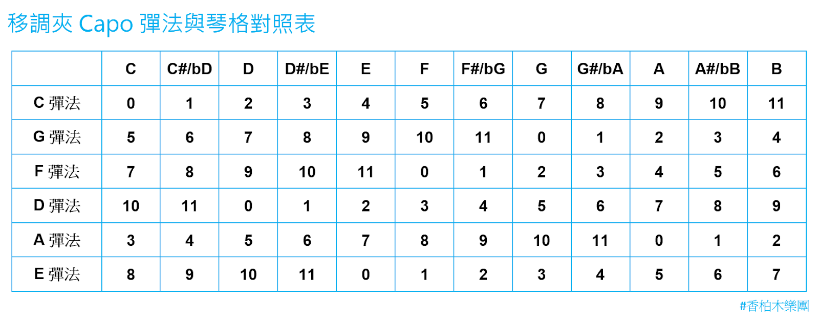 【香柏木樂團】如何使用吉他移調夾教學,直接查表不用計算